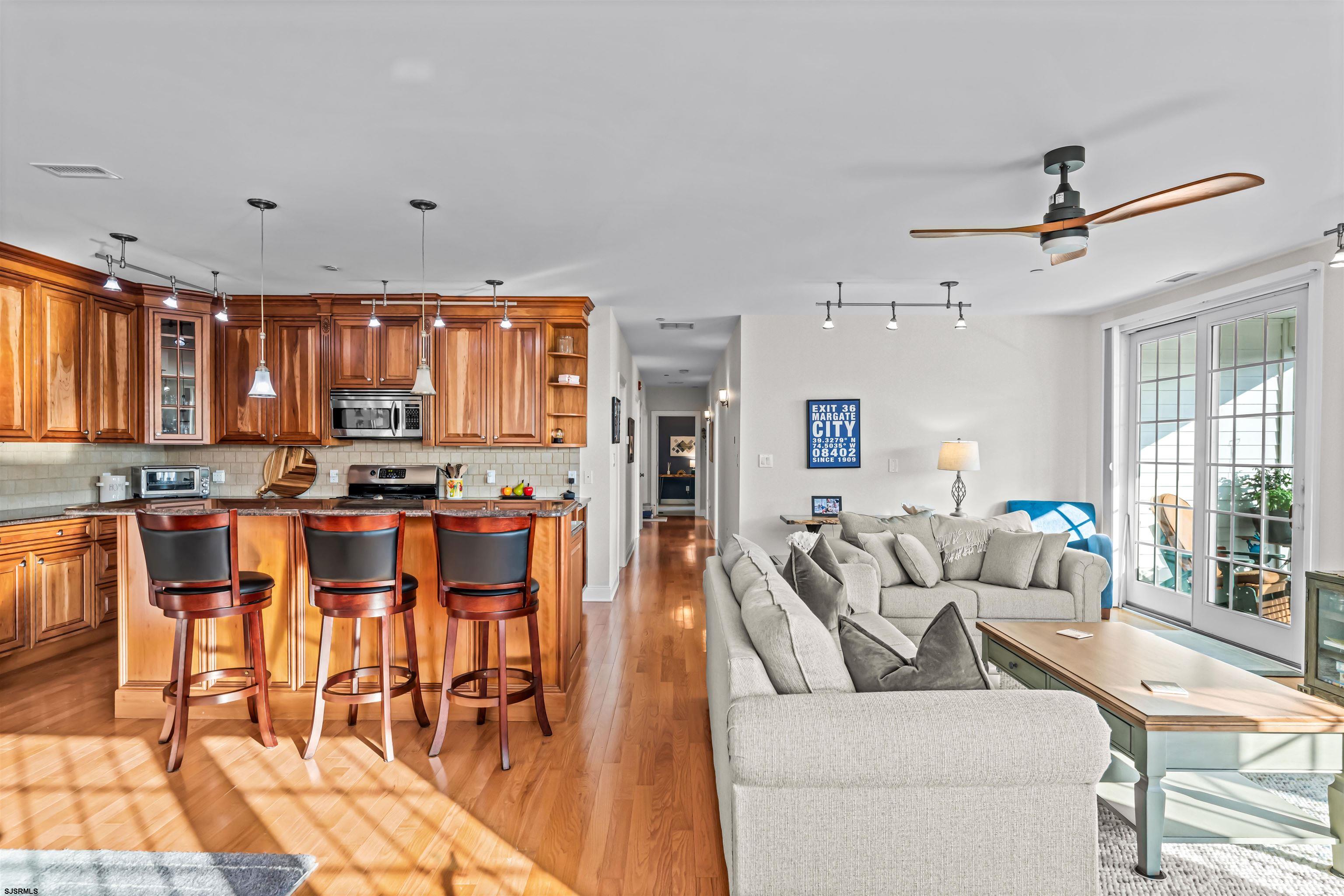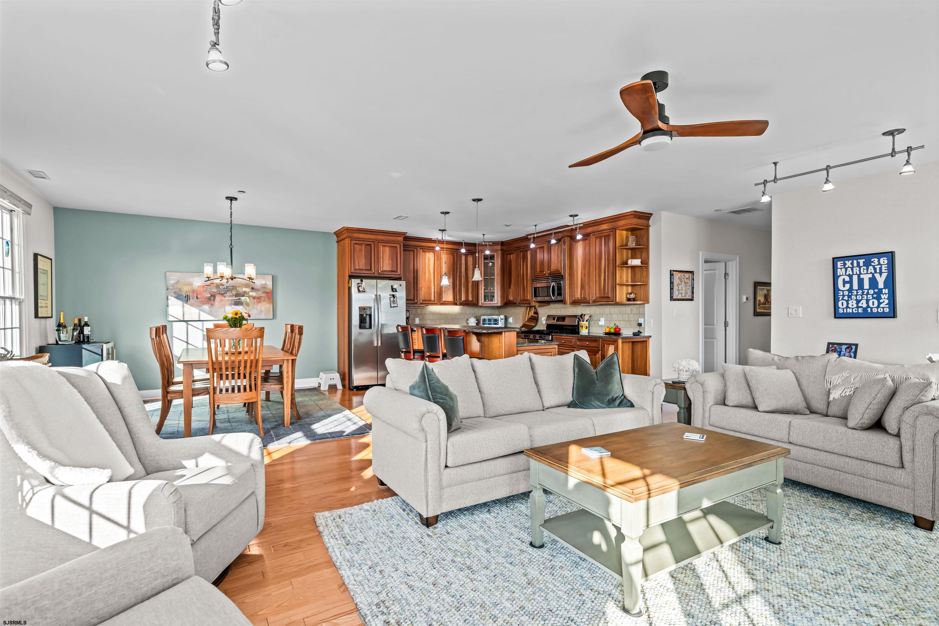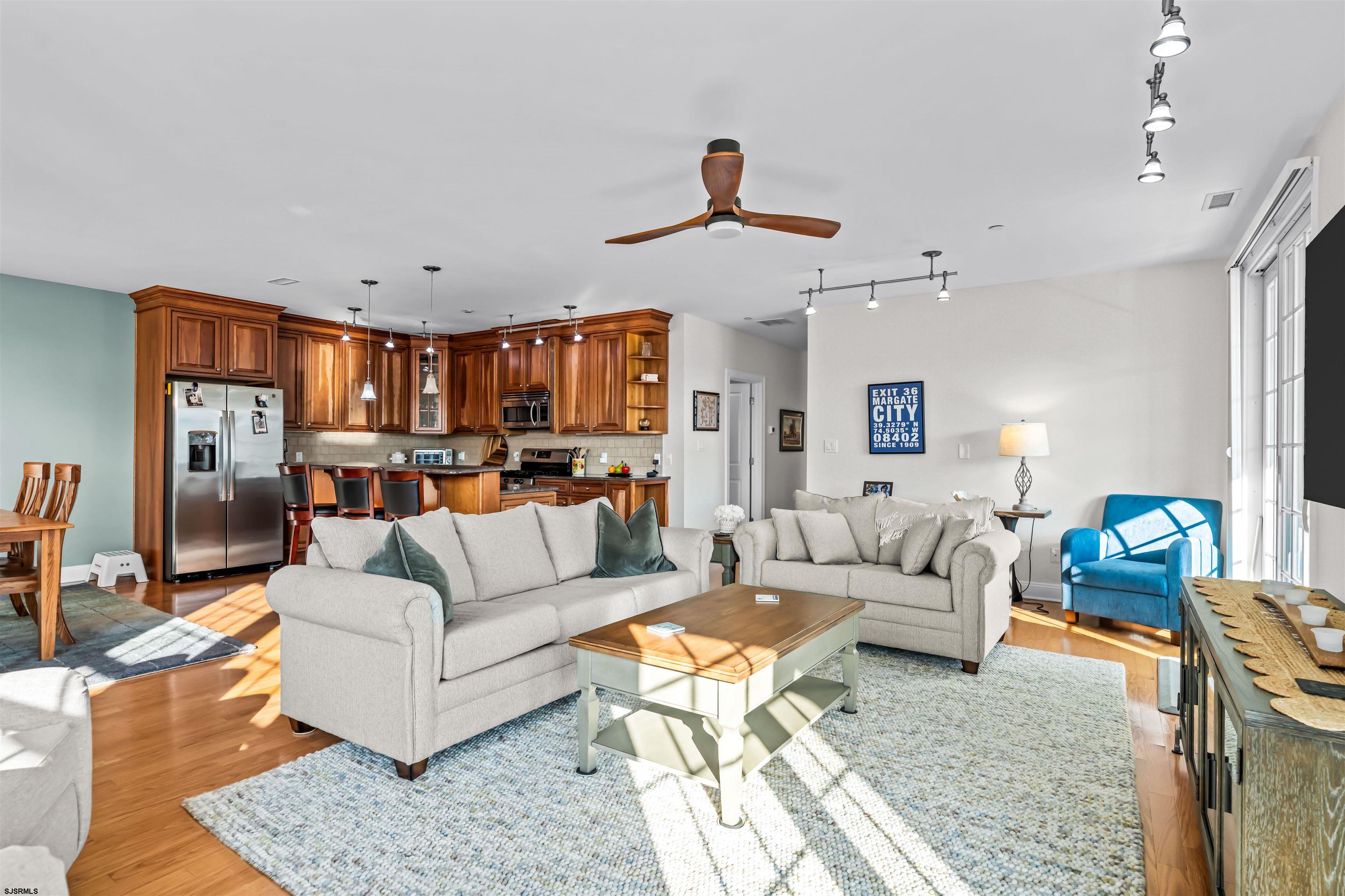 The beach is calling -- and this is the one. Just one block from the sand with ocean views, this spacious 3-bedroom, 2.5-bath condo in Margate's coveted Ocean Walk building delivers nearly 2,000 square feet of sun-soaked living space in one of the best locations at the shore. The open-concept layout features high ceilings, tons of natural light, and two sets of sliding glass doors leading to a private deck -- perfect for morning coffee or sunset cocktails. Inside, you'll find generously sized rooms, a separate laundry room, and a primary suite with a walk-in closet and spa-style bath. What you'll love: Pet-friendly (2 pets allowed!), Elevator building with secure keyless entry, Two parking spots (one covered), Private storage for your bikes & beach gear, Outdoor shower & resident-only full bath. And the location? Unbeatable. A short stroll gets you to Margate favorites like Tomatoes, Steve & Cookie's, Tideline, The Greenhouse, Betty's, and more. This one checks every box -- space, style, and a spot by the sea. Don't miss it. Recent Upgrades: Entire unit freshly painted, new dishwasher, tankless hot water heater, new carpet and modular closet system in the primary bedroom, ceiling fan in the living room, updated dining room light fixture, new keyless entry to the building, and keyless entry on the storage unit